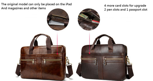 Top Layer Leather One-shoulder Crossbody Laptop Bag