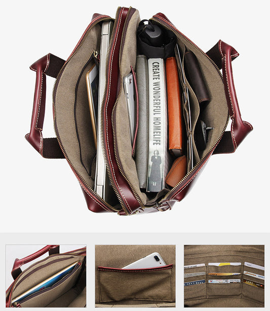 Men's Leather Briefcase Can Be Used For 14-inch Laptop