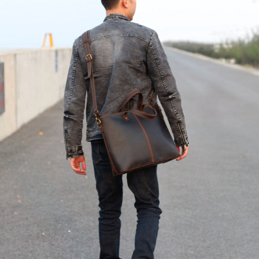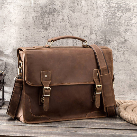 Crazy Horse Leather Men's Handbag Horizontal Men's Bag Briefcase England