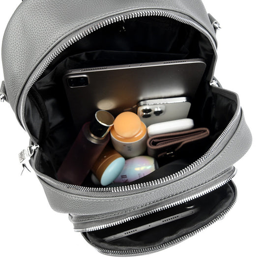 Pu Backpack Practical Soft Leather Zipper Handbag
