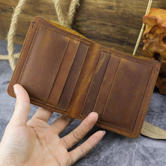 New Leather Wallet For Man Retro Crazy Horse Leather Casual Short Wallet