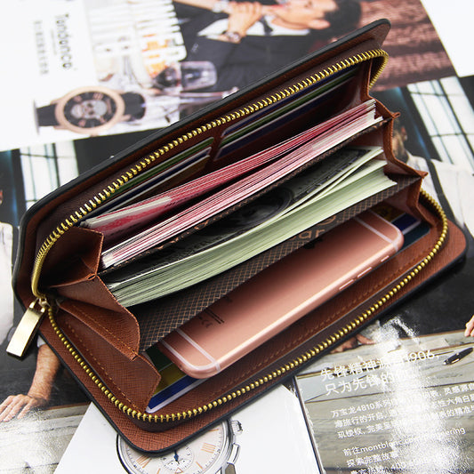 Long Top Layer Cowhide Men's Wallet Multifunctional